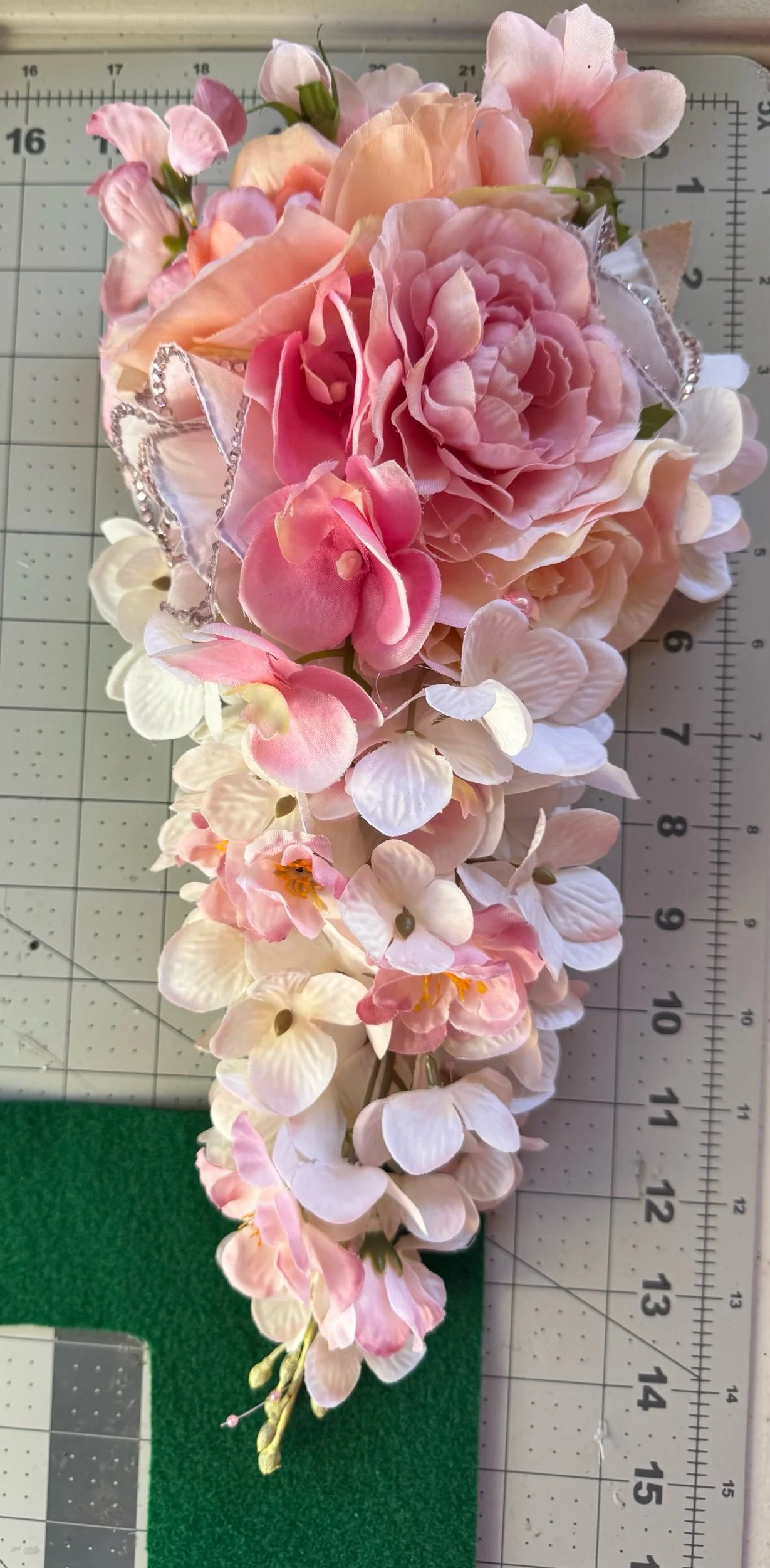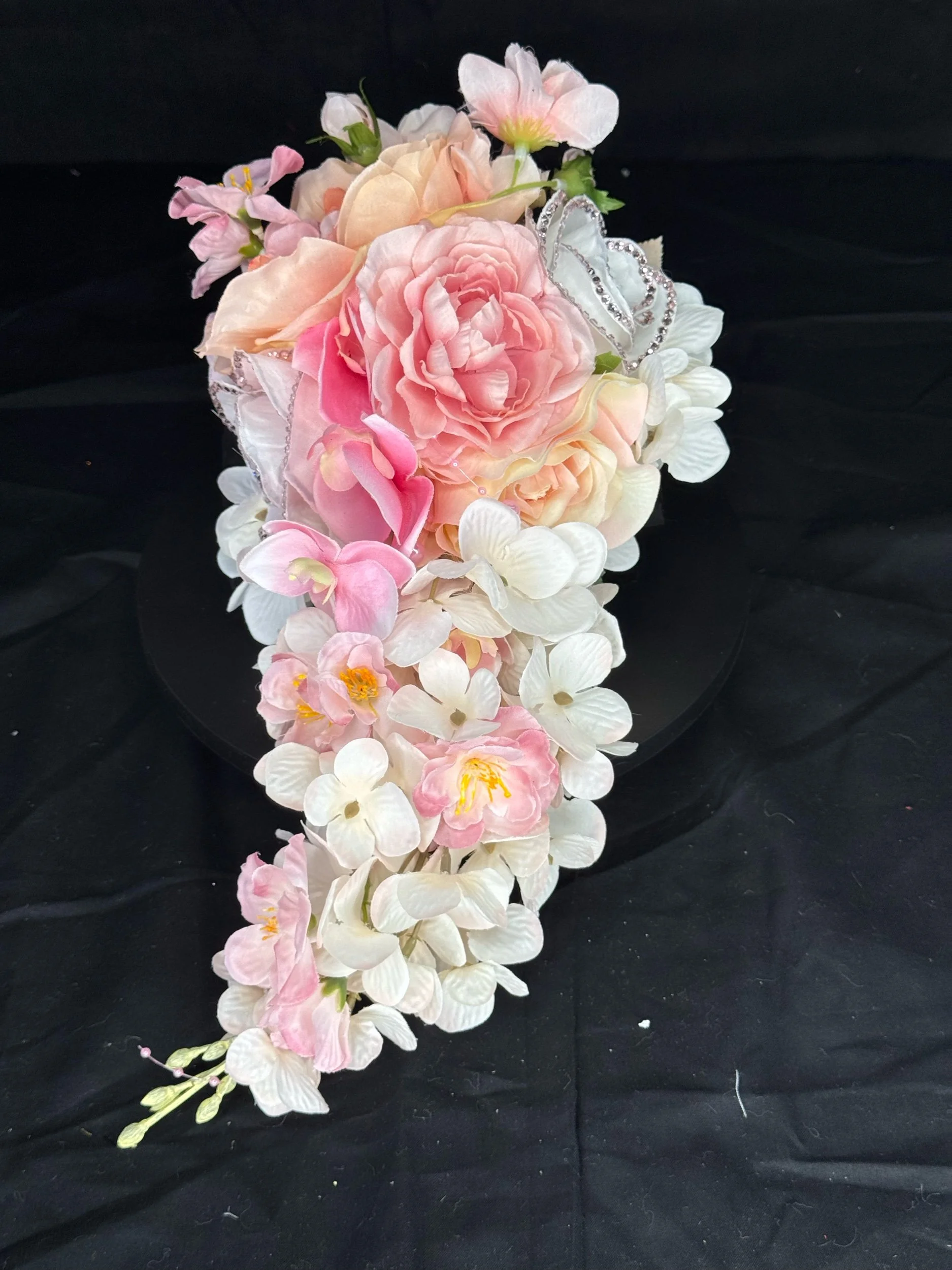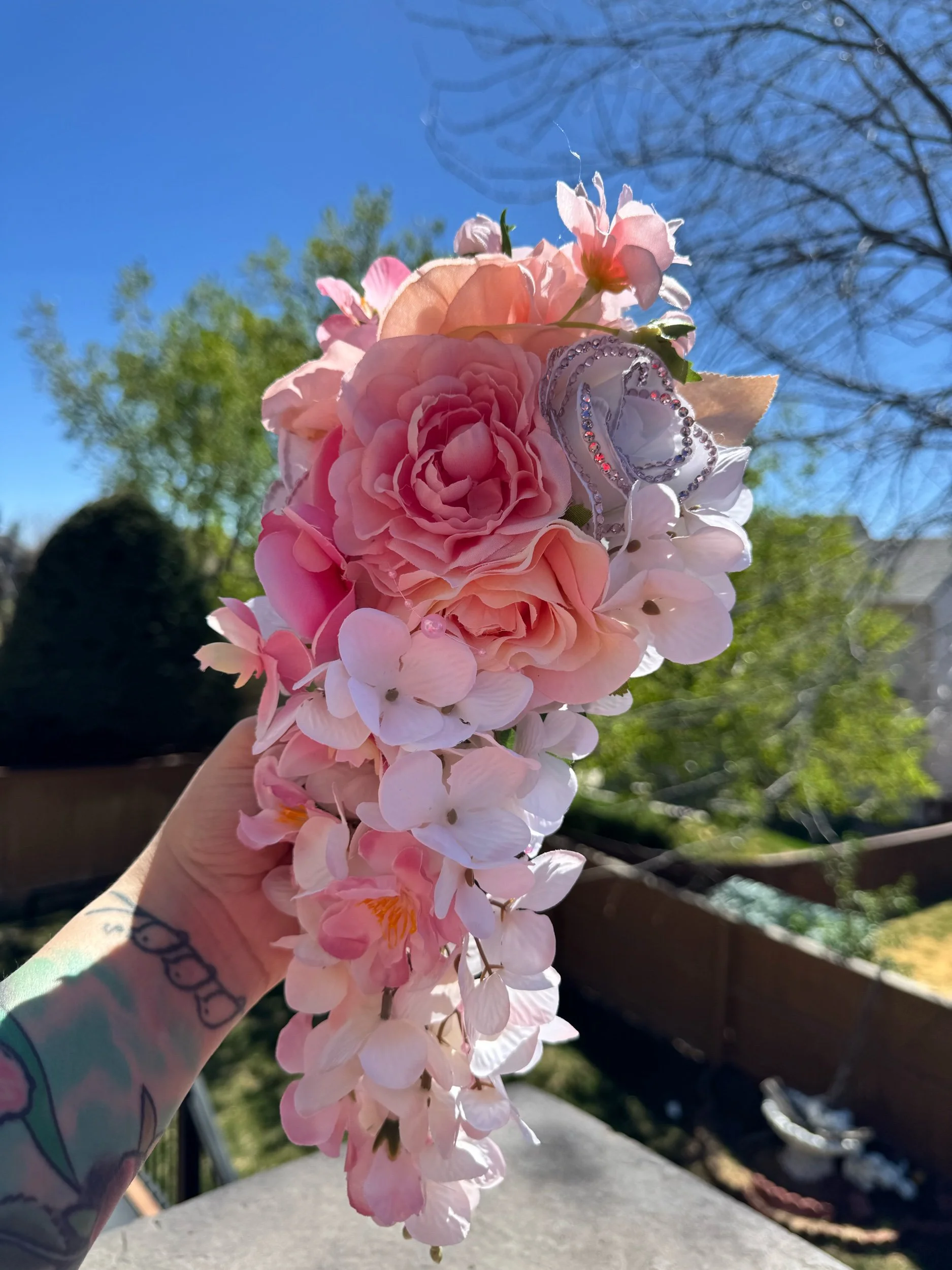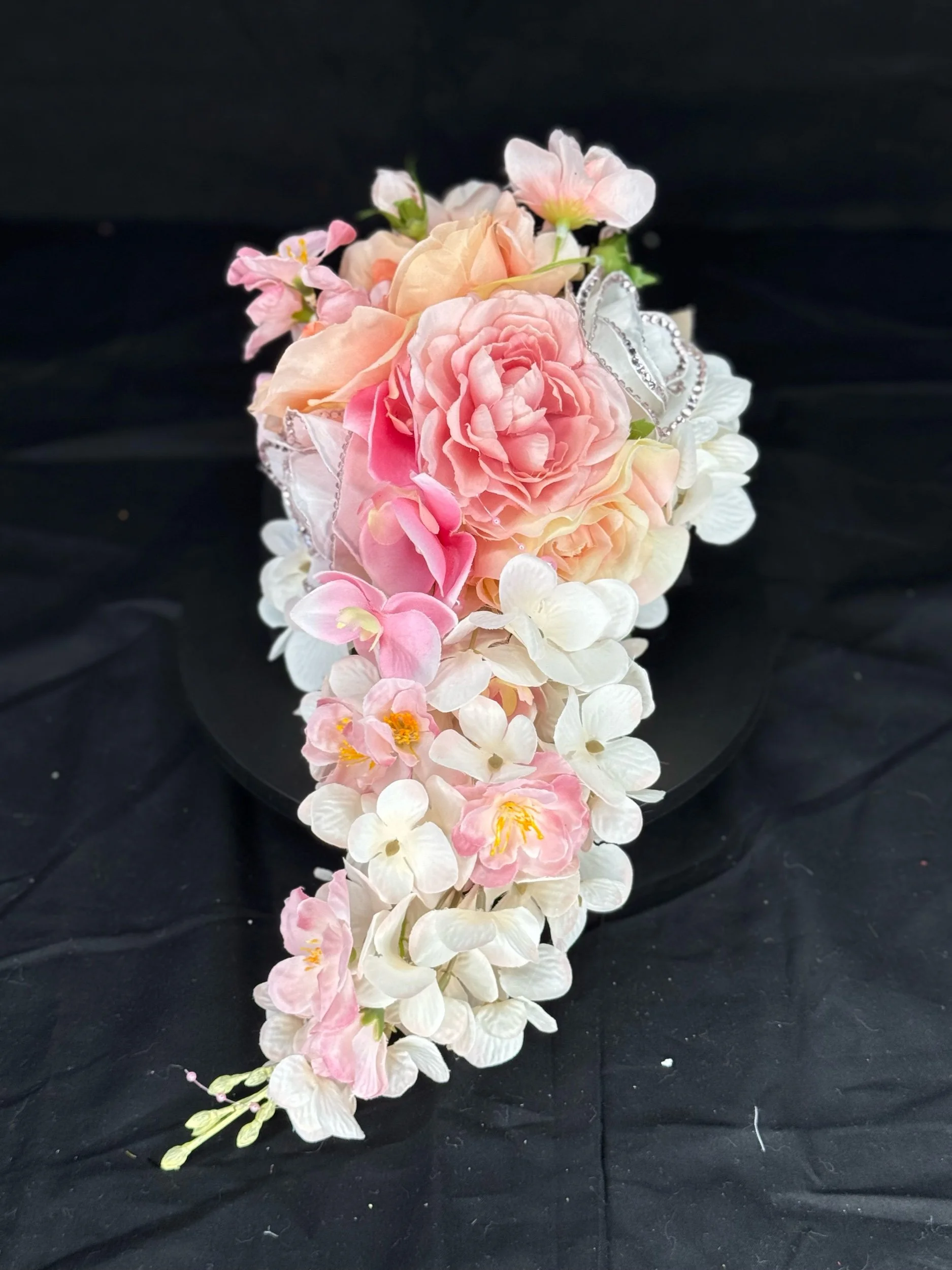 • Lush Silk Layers: A gradient of pinks—from soft blush to deep rose—and creamy white blossoms create a dense, pillowy bouquet.