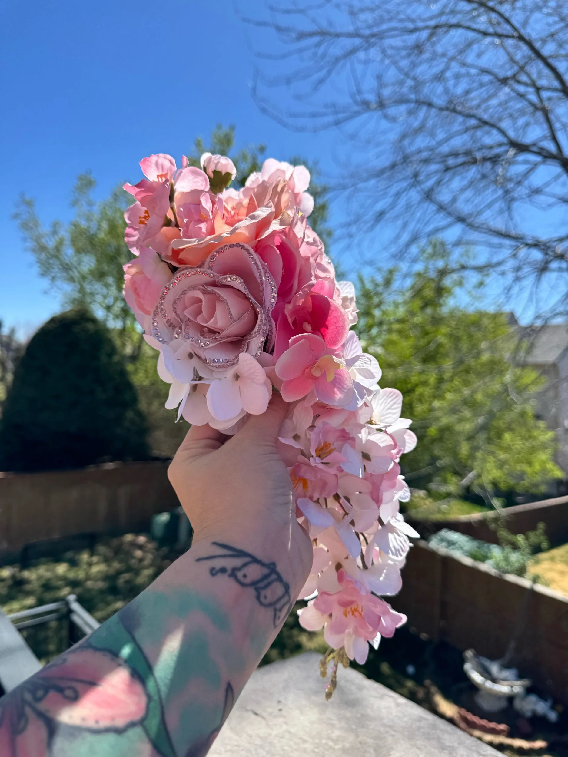 • Mixed-Media Mastery: The use of wood flowers gives this piece a sturdy, high-quality feel while the silk elements provide the classic "hair flower" softness.
