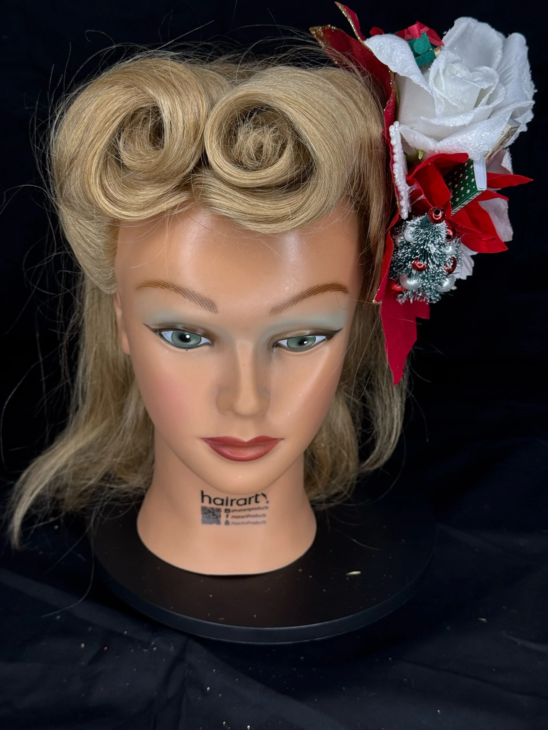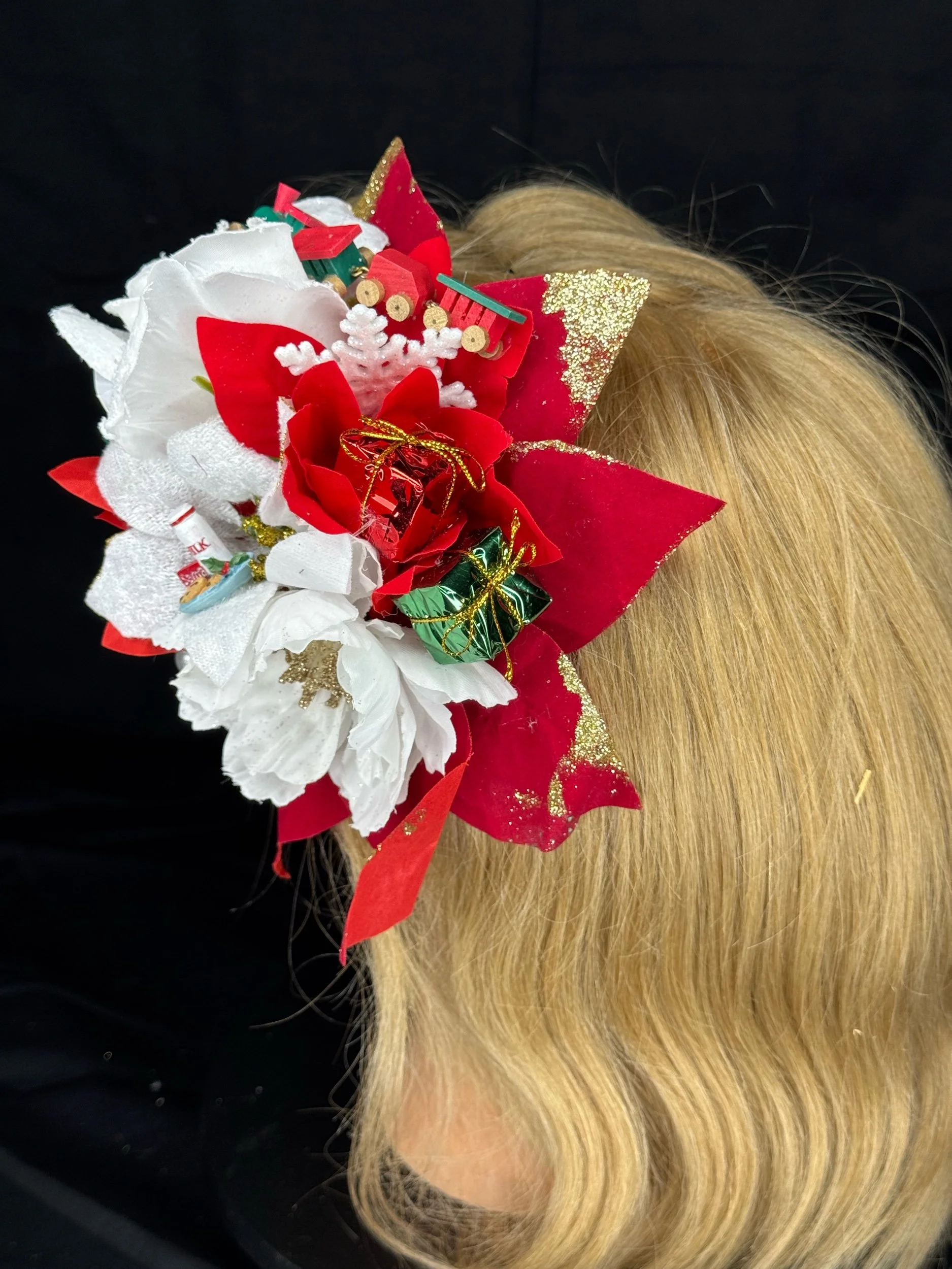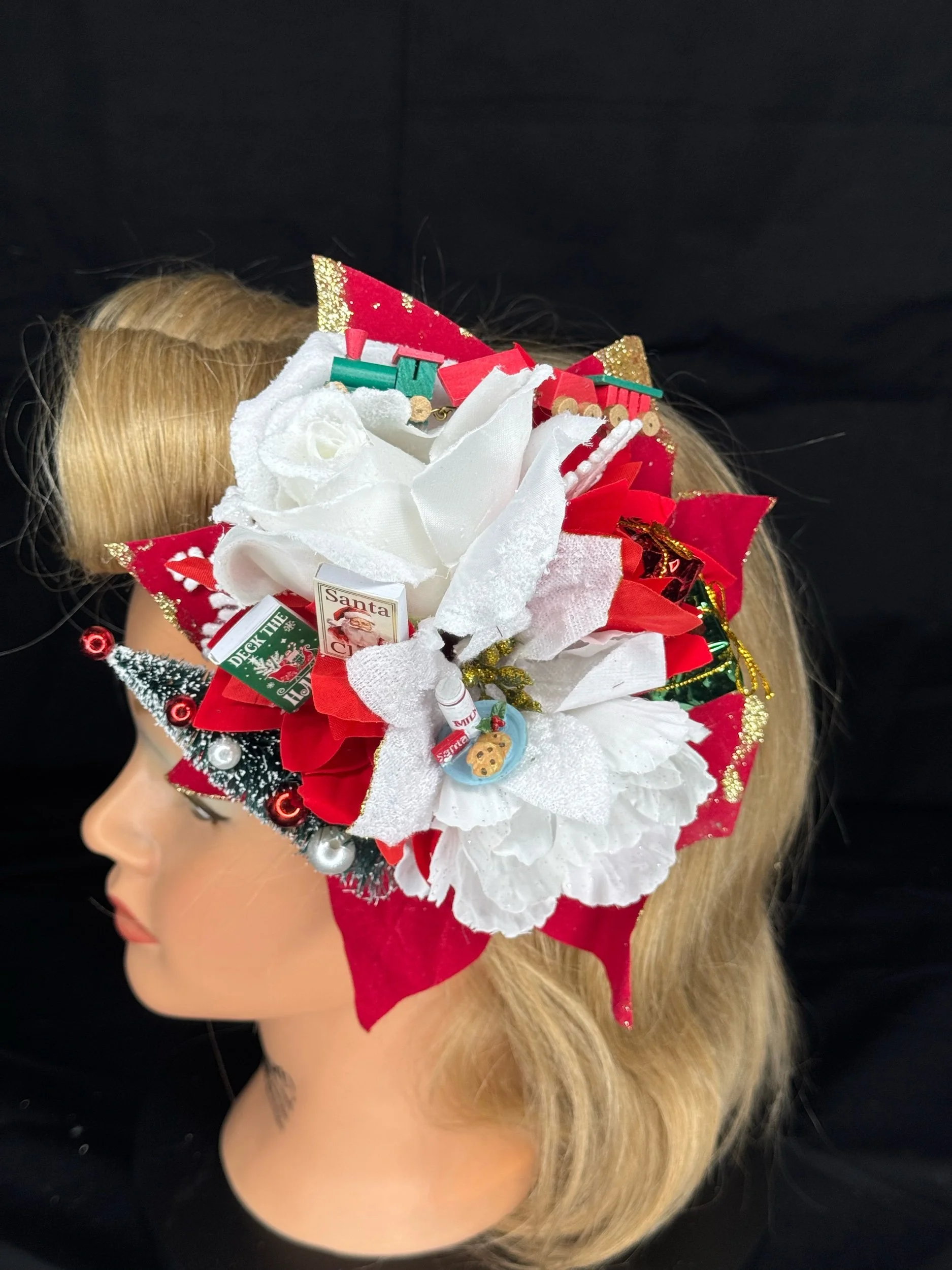 The stockings are hung, the milk and cookies are set out, and the magic of Christmas Eve fills the air — Waiting for Santa captures that perfect moment of holiday wonder in one dazzling, handcrafted piece. Brimming with retro charm and twinkling nostalgia, this one-of-a-kind hair beauty is a tribute to cozy nights, childlike excitement, and the timeless sparkle of vintage Christmas.