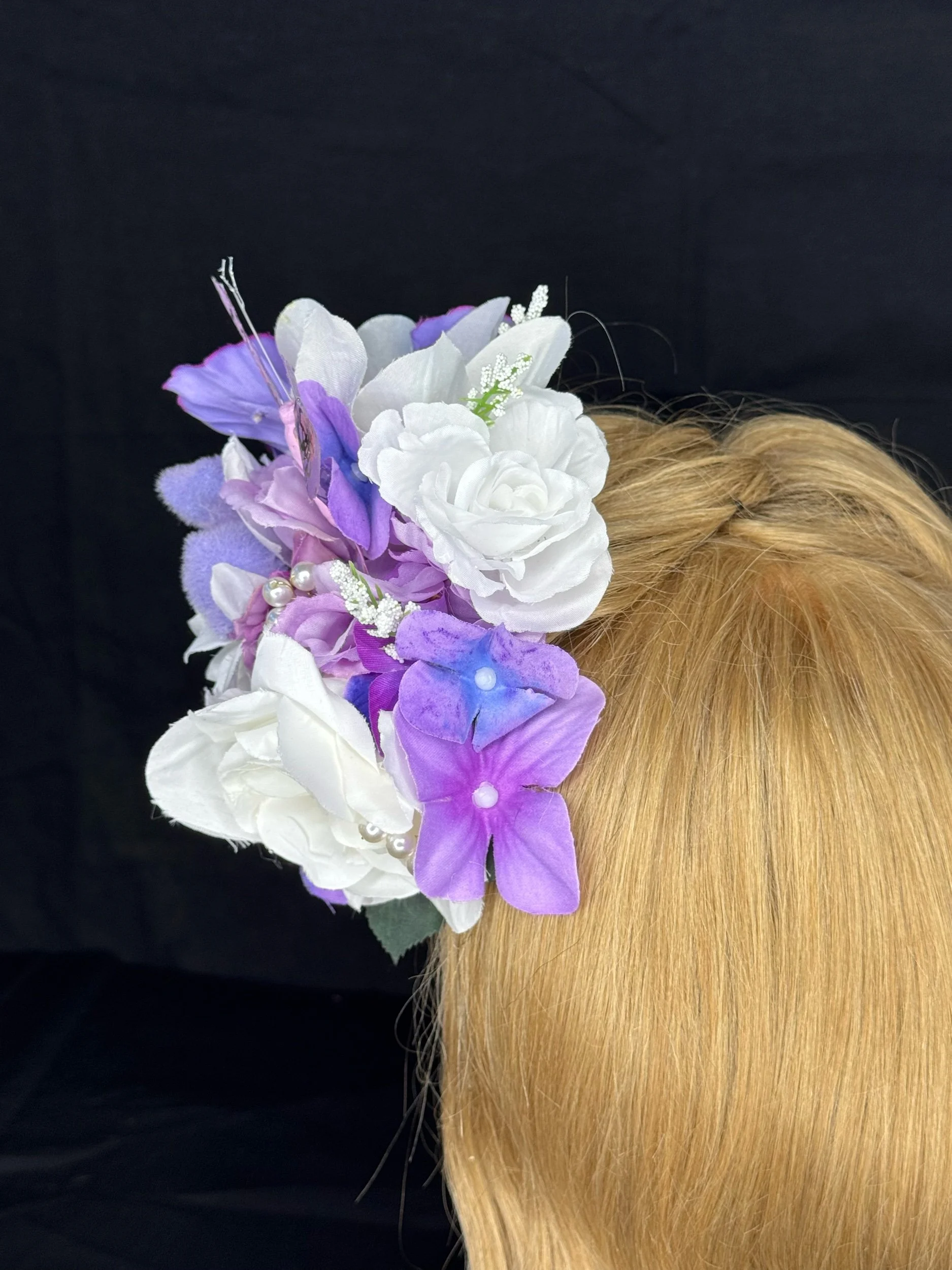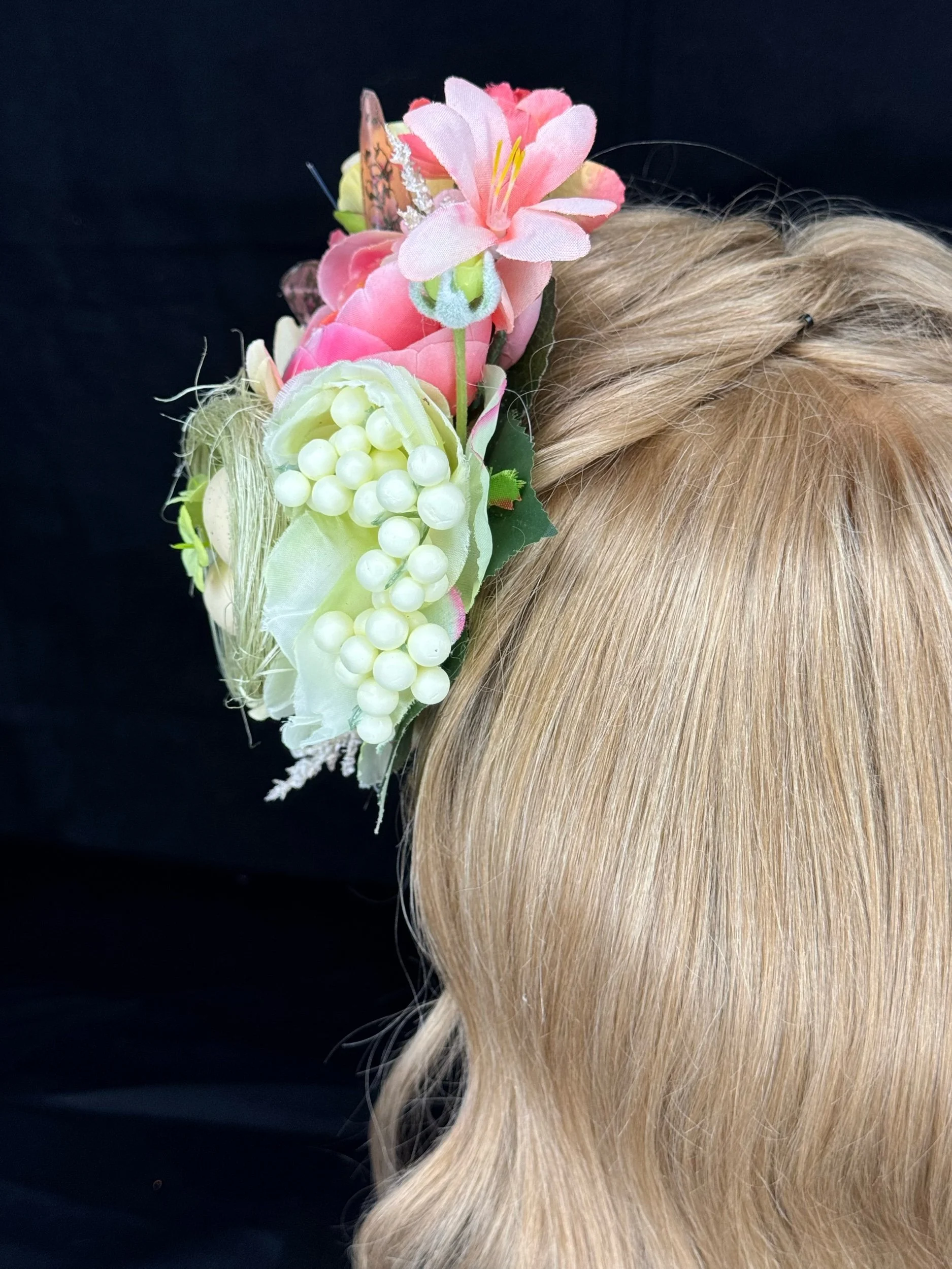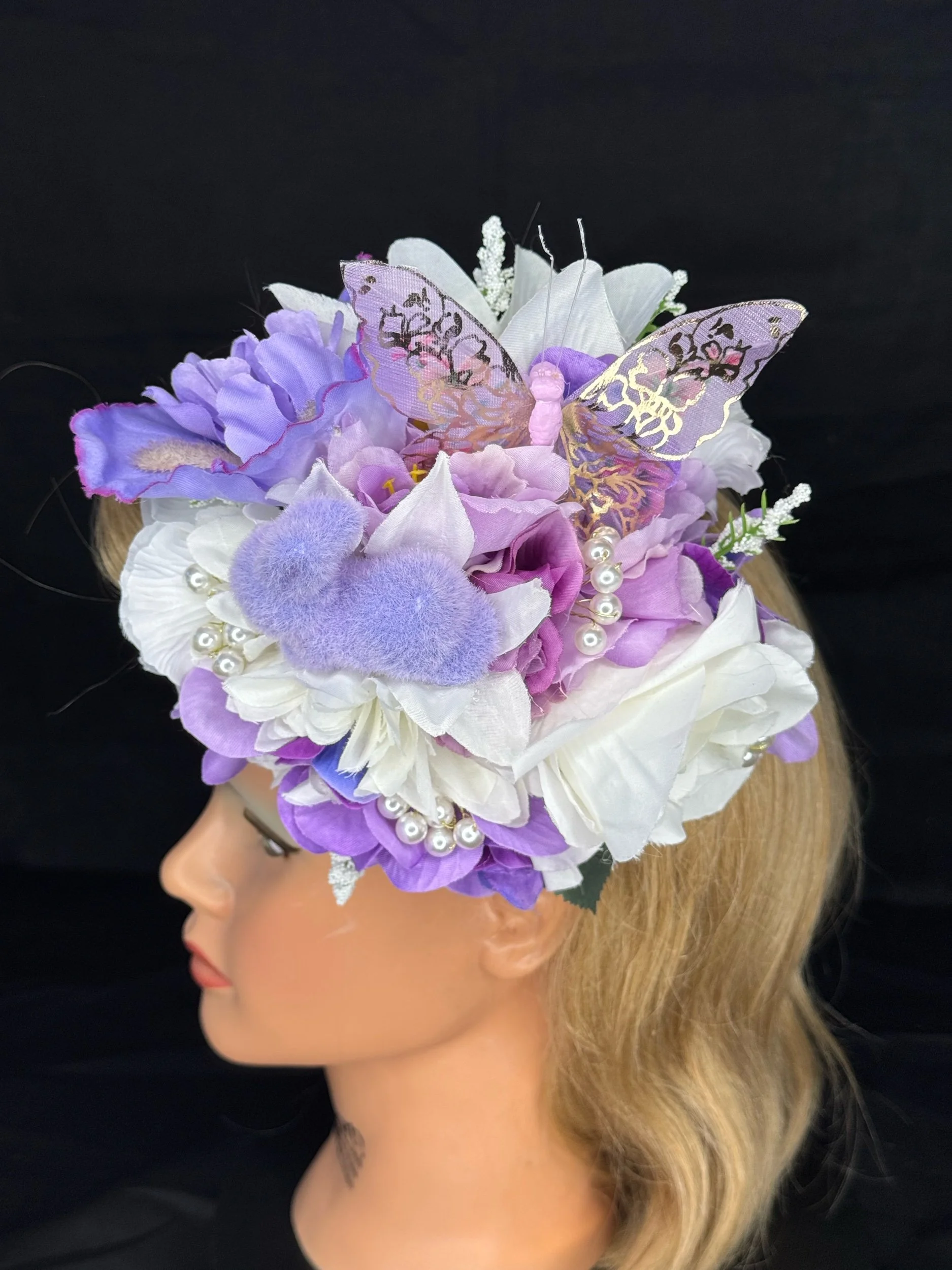 Indulge in a whimsical fairytale with “Little Bunny Foo Foo,” a luxurious and playful hairpiece that captures the magic of a hidden garden. This design balances a regal color palette with a delightful "Easter-chic" aesthetic, making it a standout choice for those who want their accessories to tell a story of elegance and charm.