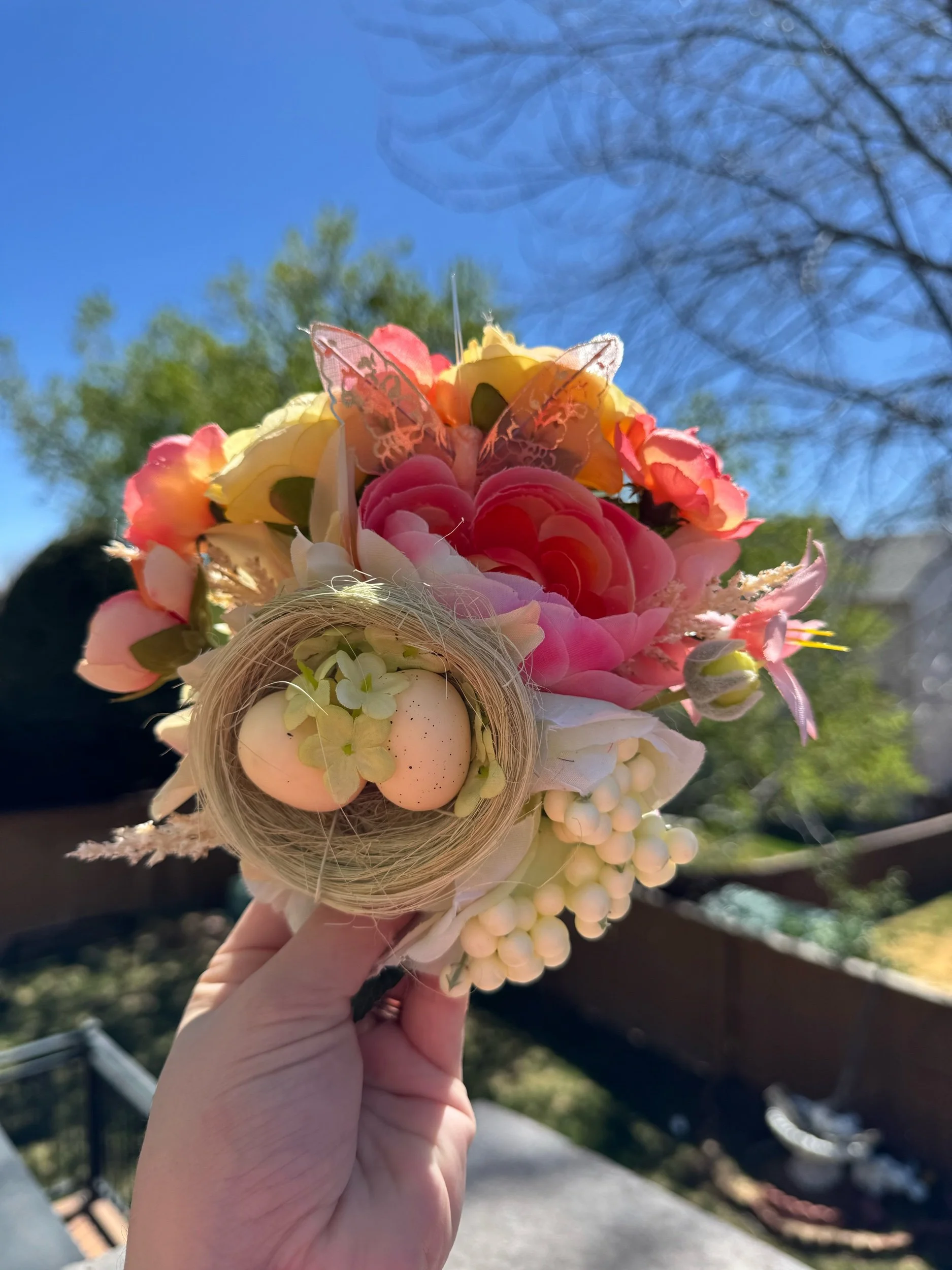 • Luxe Pearl Clusters: Hand-wired pearl stems are tucked throughout the blooms, providing a timeless, vintage-inspired finish.