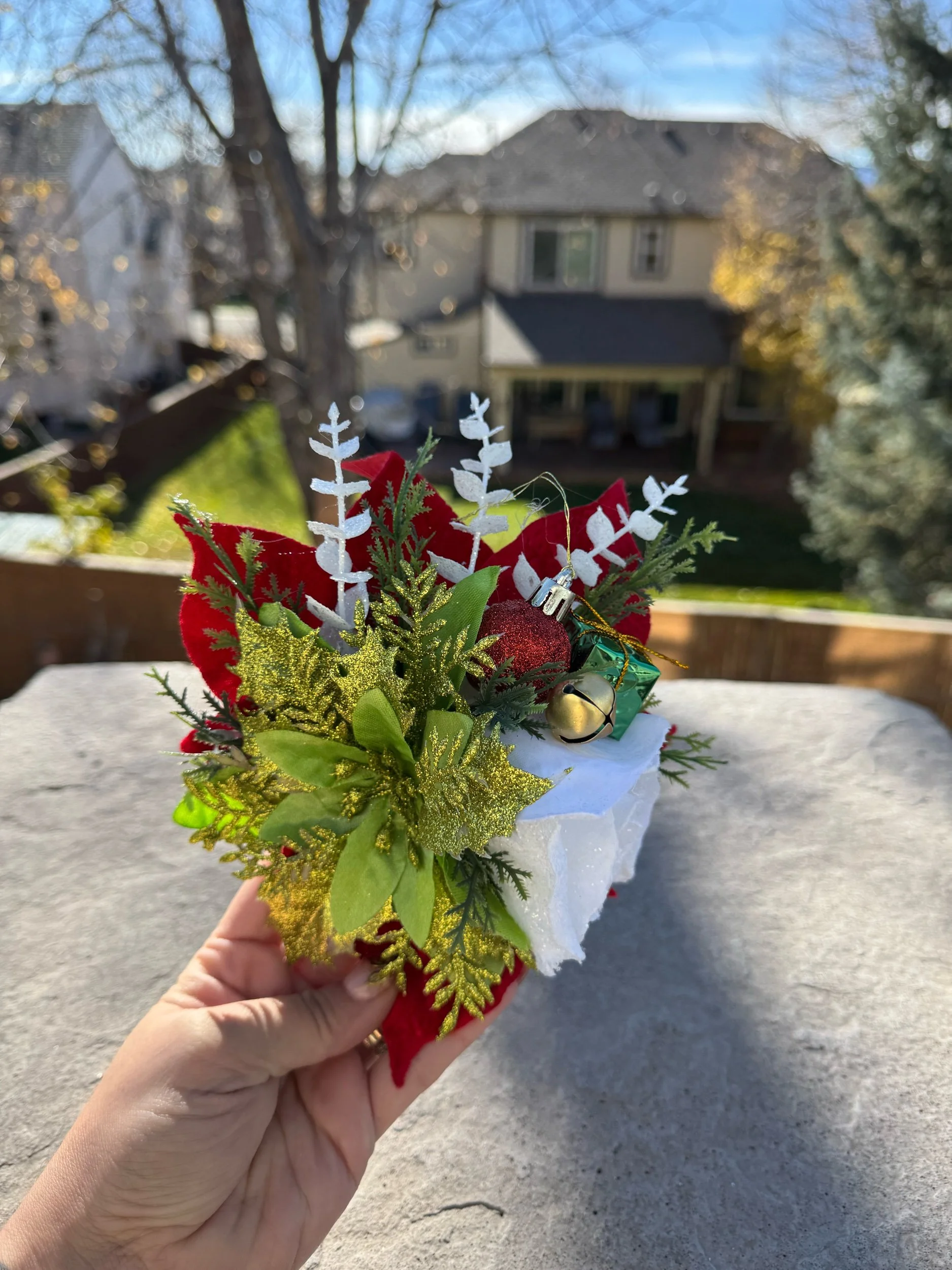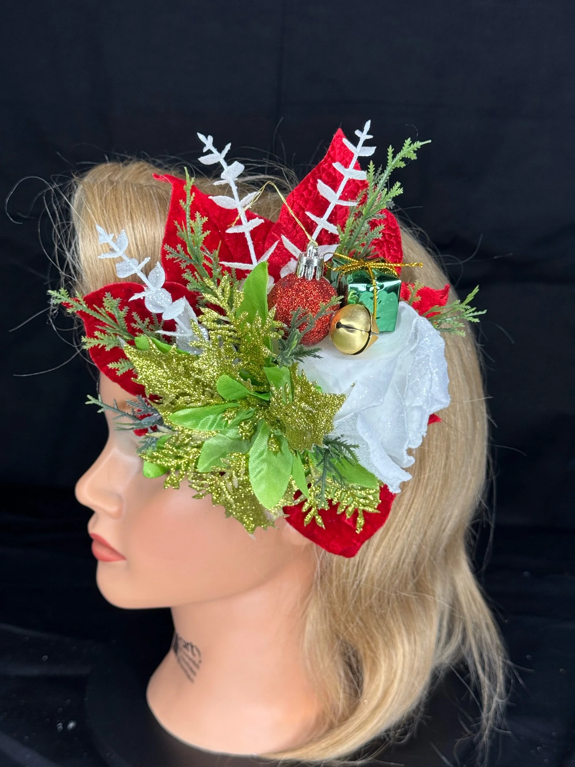Every petal and sparkle is placed with care to balance whimsy and sophistication — a true statement piece for any Christmas fête, winter photoshoot, or just a festive night out where your hair deserves to shine as bright as the tree.