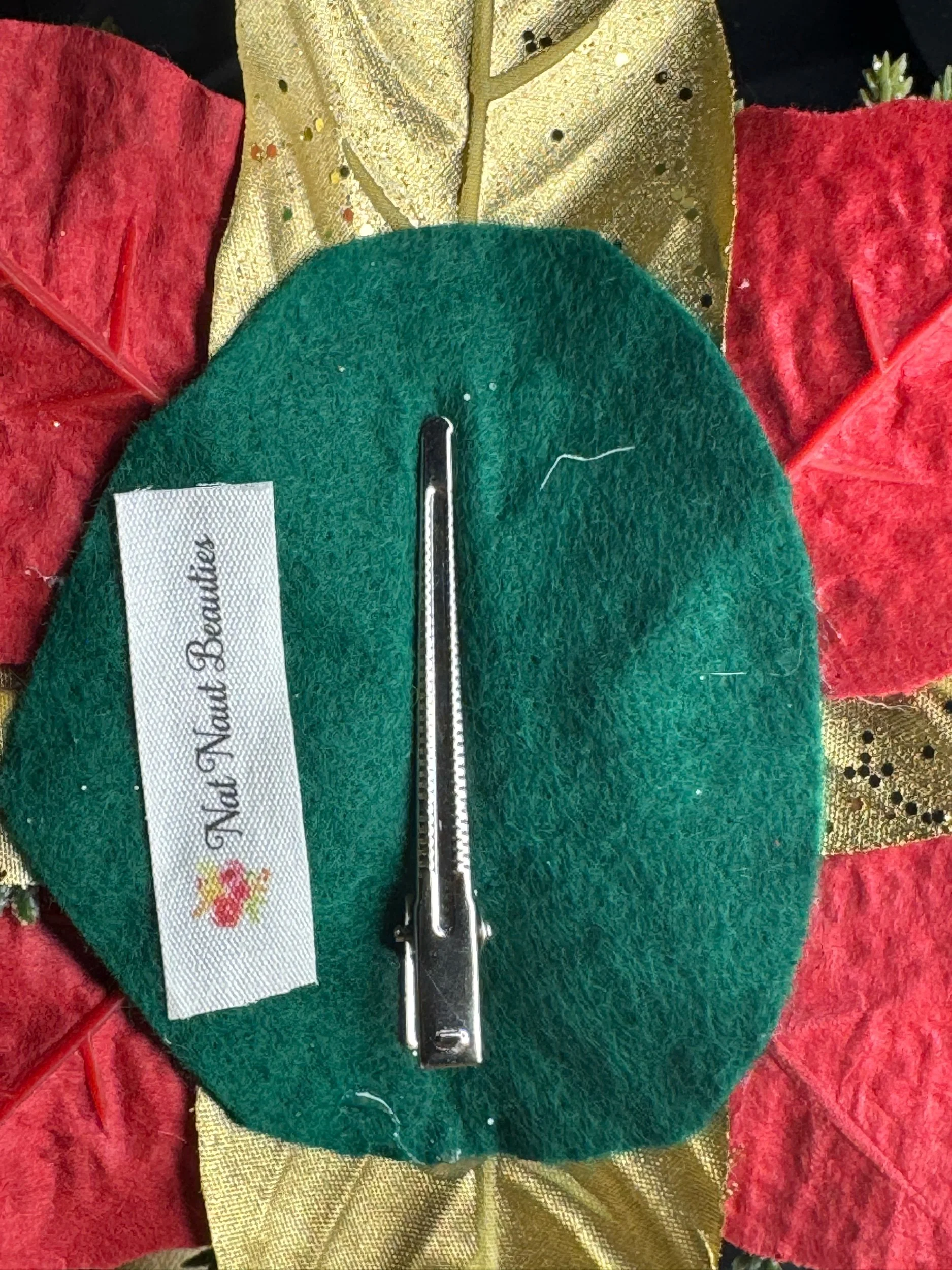Every detail, from the precise jewel placement to the frosted foliage, exudes luxury and craftsmanship. The combination of deep crimson and rich gold strikes the perfect balance between festive cheer and timeless glamour — ideal for the beauty who wants her holiday look to make an unforgettable statement.