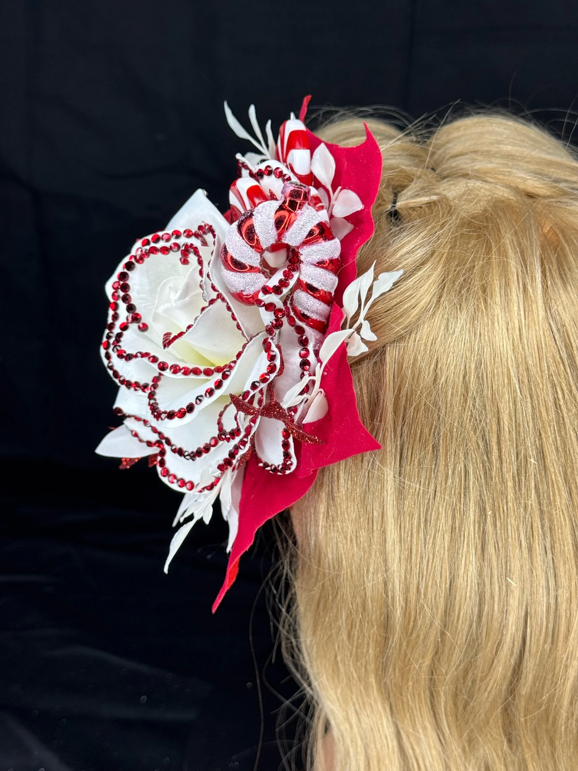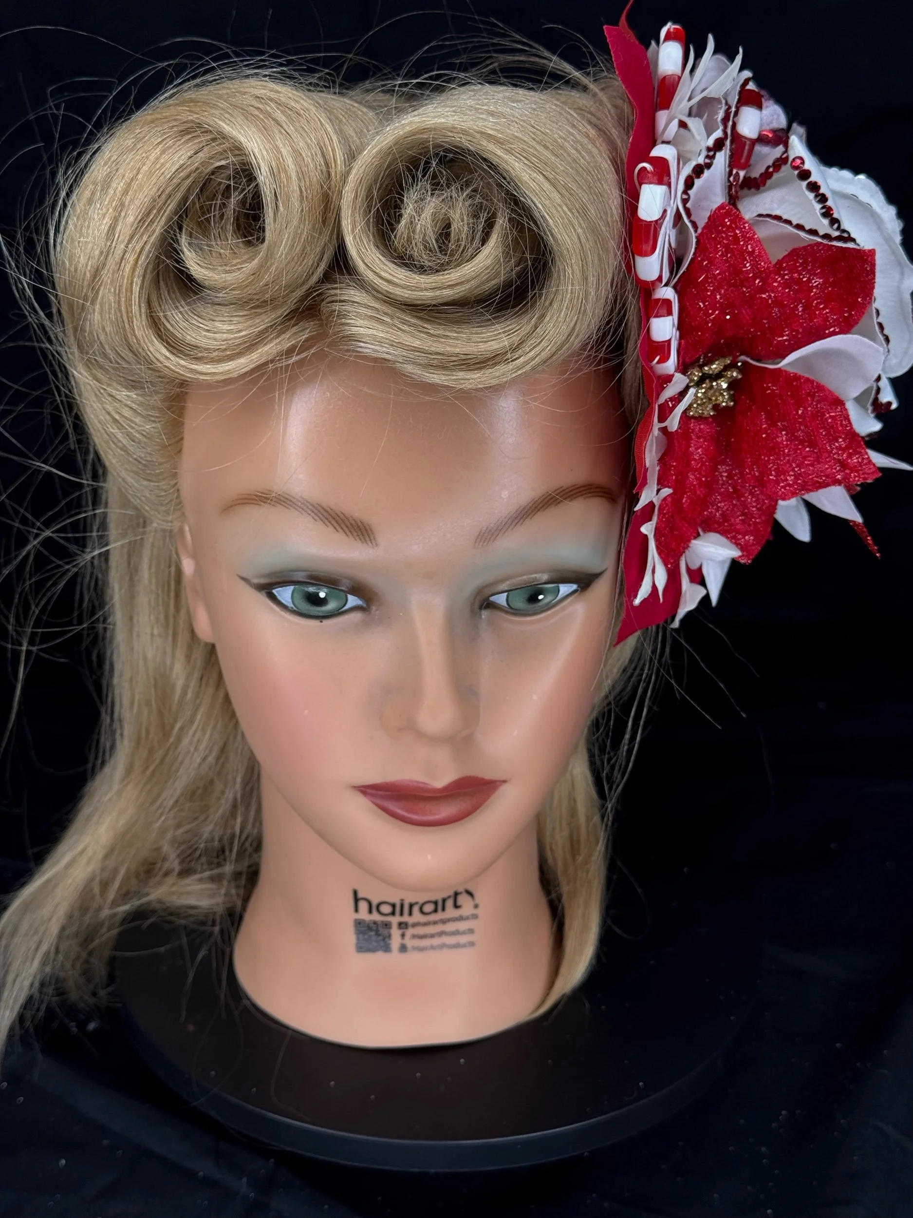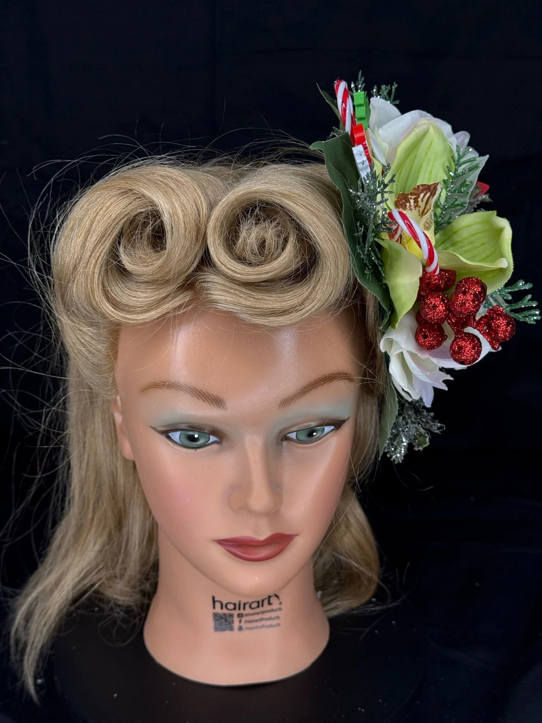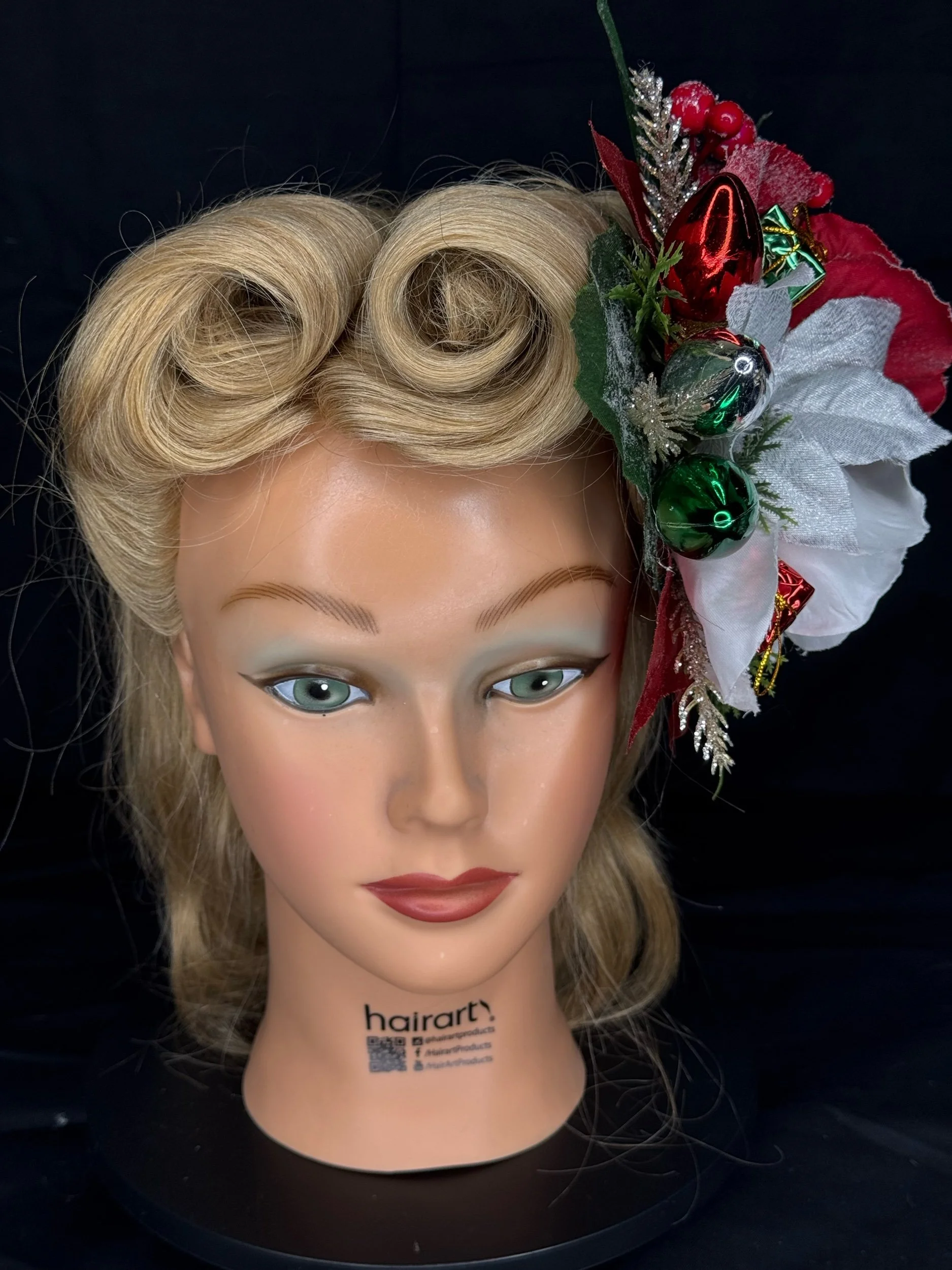 For the doll who loves her Christmas as bright as her personality — Griswold Grace captures the sparkle, spirit, and slightly over-the-top charm of a vintage holiday done just right… or delightfully wrong. Inspired by classic 1950s decor and the iconic chaos of a certain festive family, this one-of-a-kind hairpiece is equal parts kitsch and class.