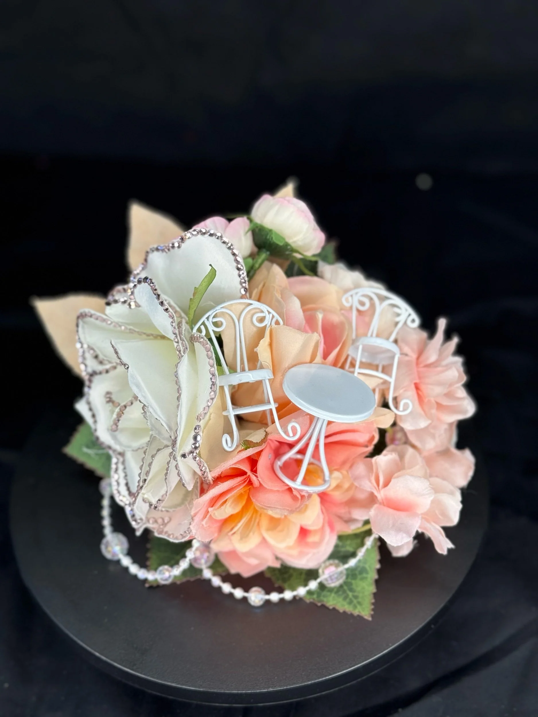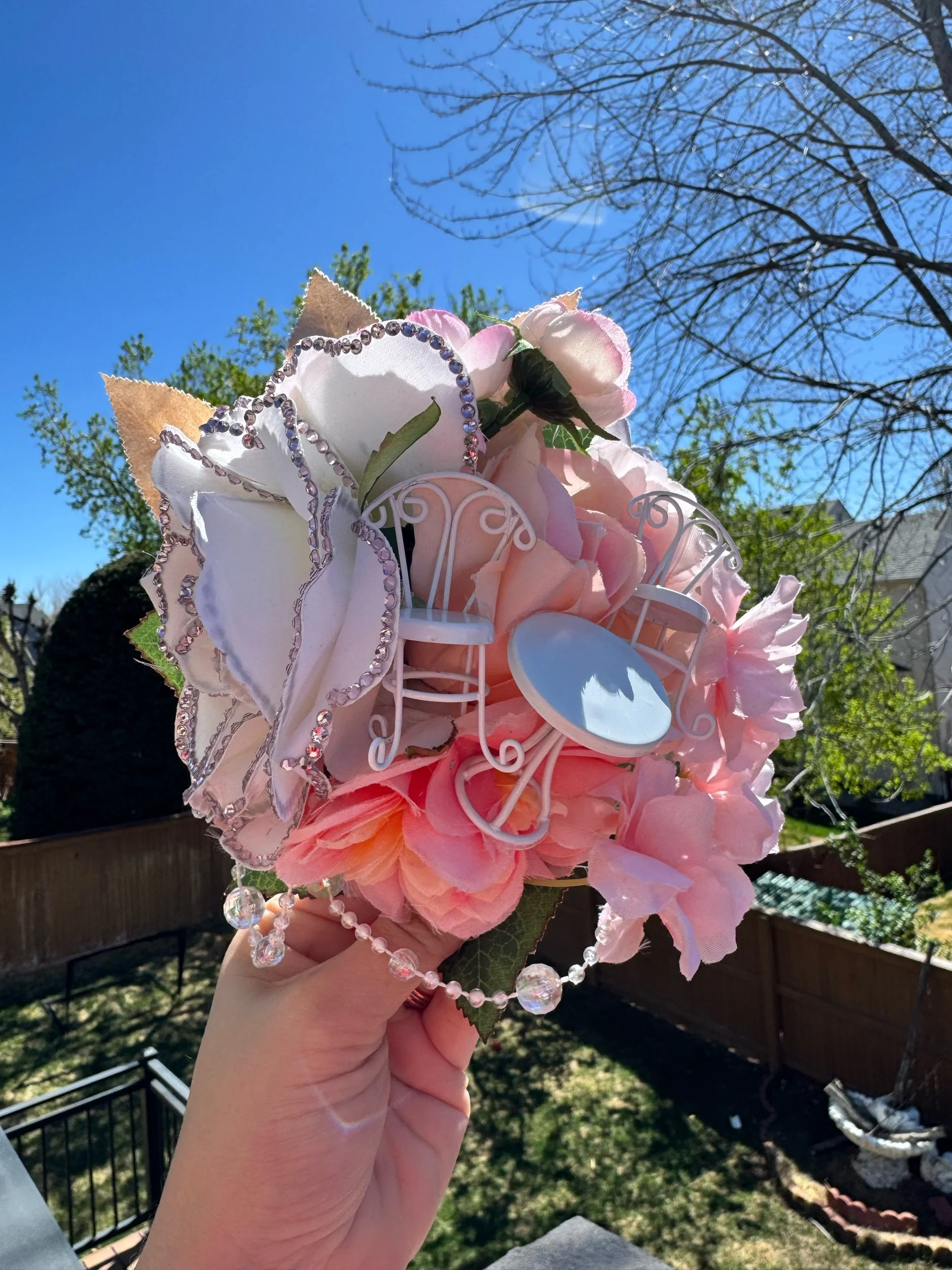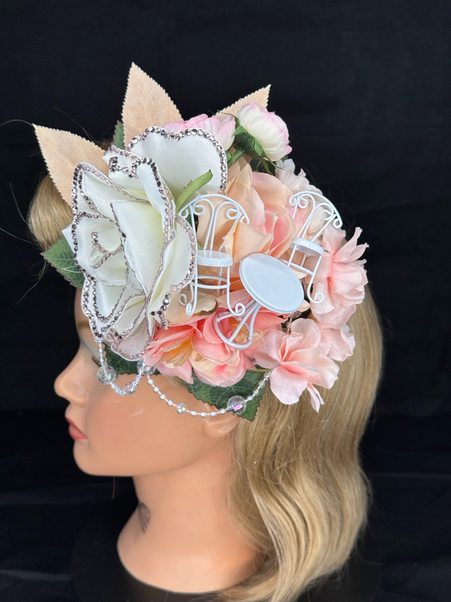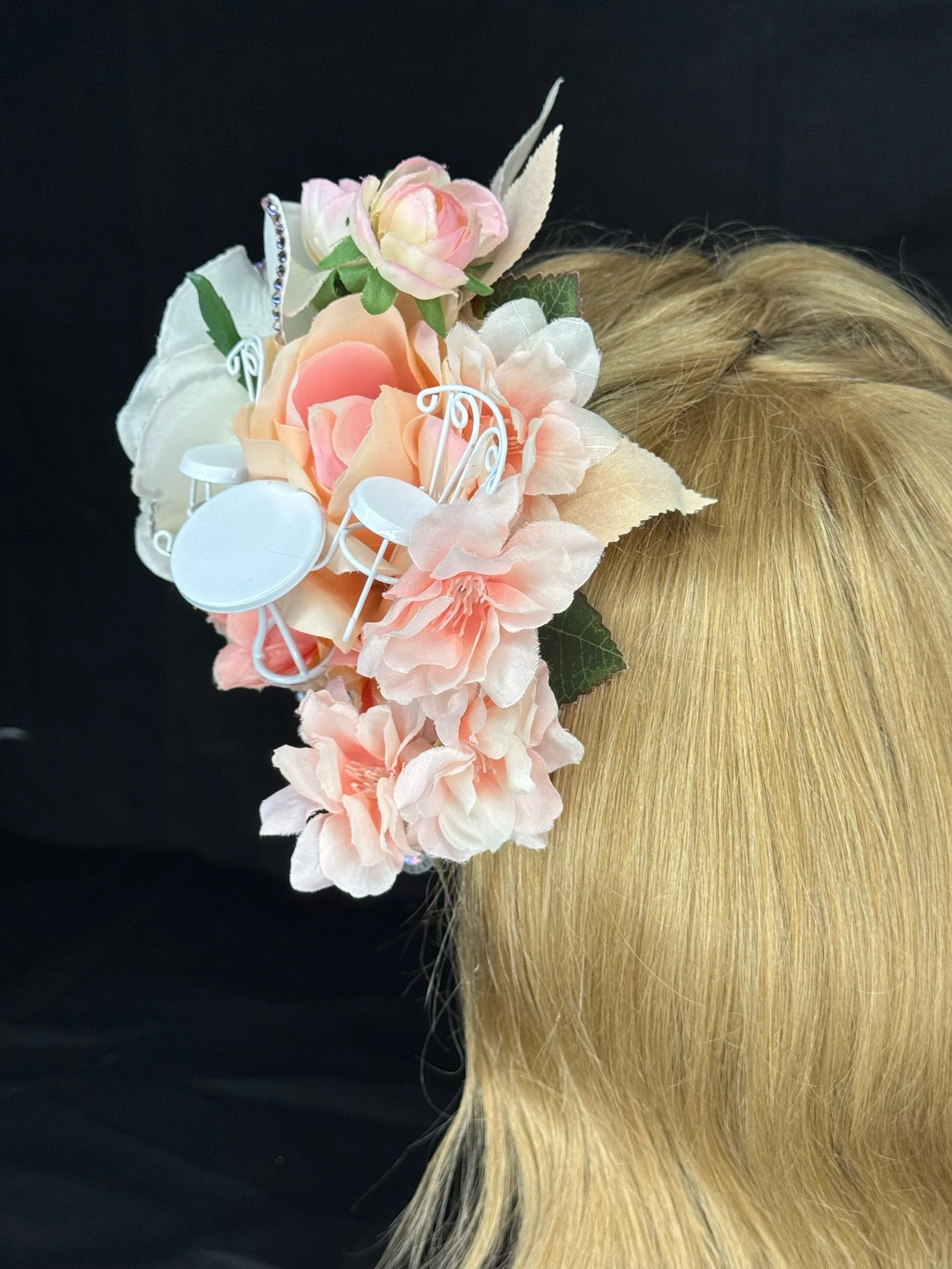 Step into a living fairytale with “Hatching a Dream,” an intricately designed floral fascinator that captures the very essence of a garden in bloom. This statement piece is a multi-dimensional masterpiece, featuring a lush explosion of warm-toned florals and a delightful, hidden surprise that brings the beauty of nature directly to your wardrobe.